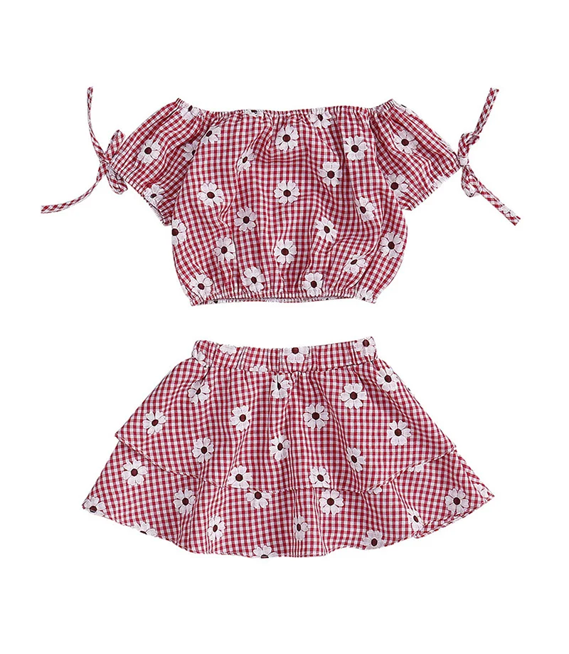 Product Name: Girls' Floral Clothing Set Off Shoulder Tops + Short Skirt