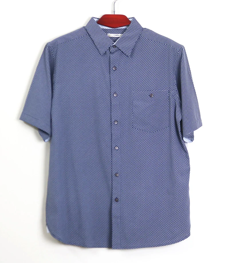 Product Name: Men’s S/S Casual Shirt with Decorative Contrast at Side Slit and Inside Collar and Inside Sleeve Hem