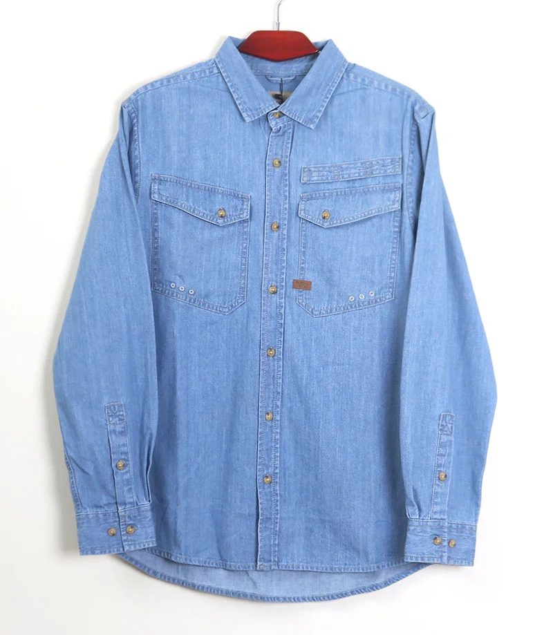 Product Name: Men’s L/S Double Pocket Double Flap Decorative Panel Stripe Shirt (Enzyme Stone Wash)