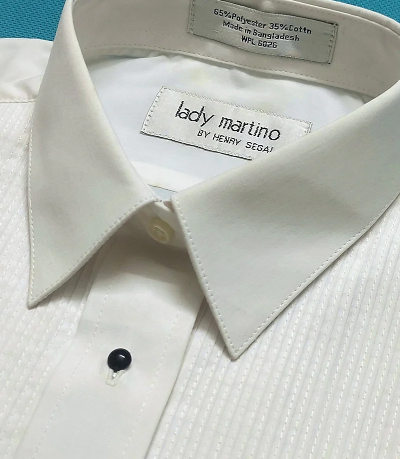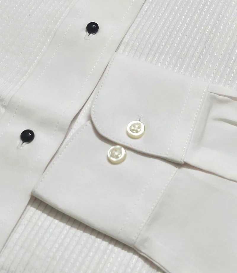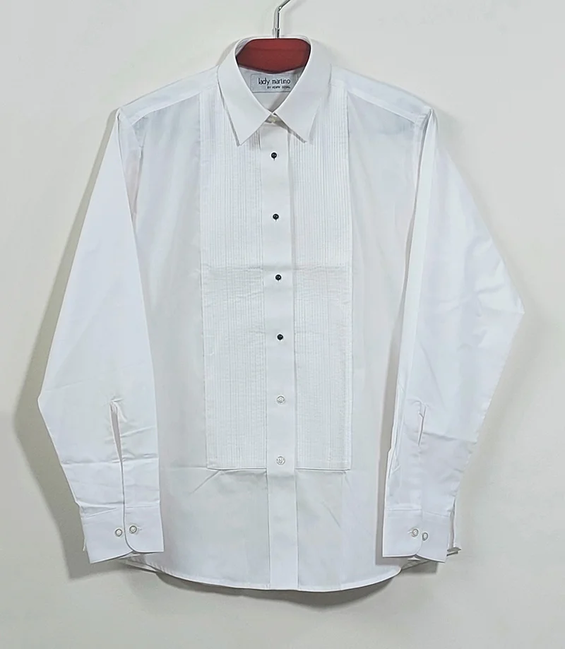 Product Name: Women’s L/S White Color, Laydown Collar, 1/8” Pleated Tuxedo Shirt
