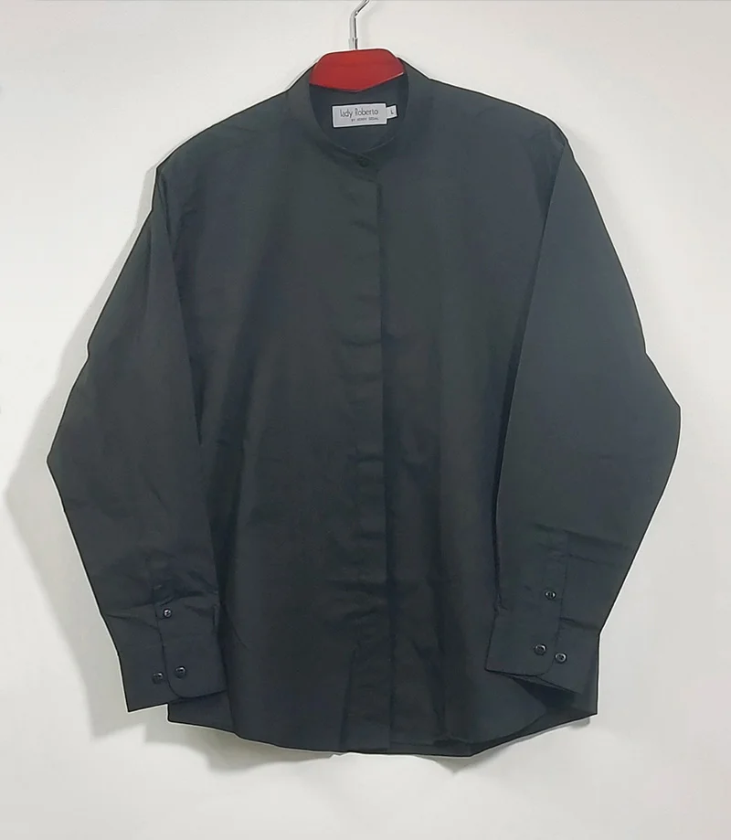 Product Name: Women’s L/S Black Color, Banded Collar, Hidden Placket Shirt