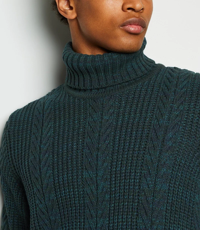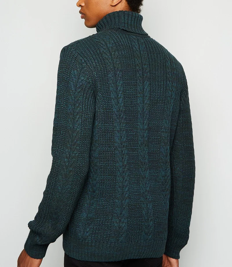 Product Name: Men’s Dark Green Cable Knit Roll Neck Jumper