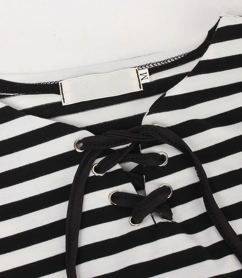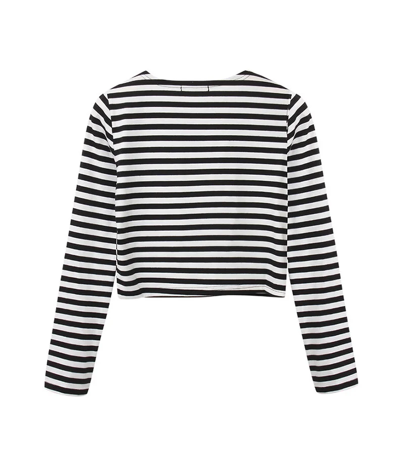 Product Name: Women’s Stripe Cross Strap L/S V-Neck T-Shirt