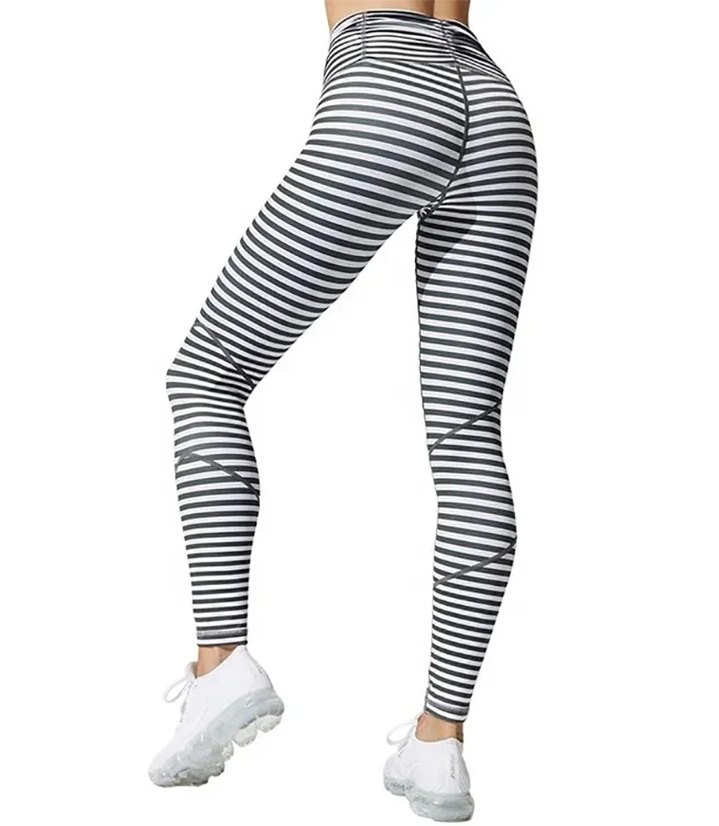 Product Name: Women's Black & White Striped Leggings with Back Pocket